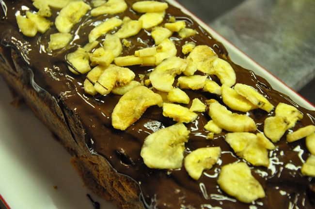 Über den Kuchen geben, die Bananenchips darauf streuen. Fest werden lassen.